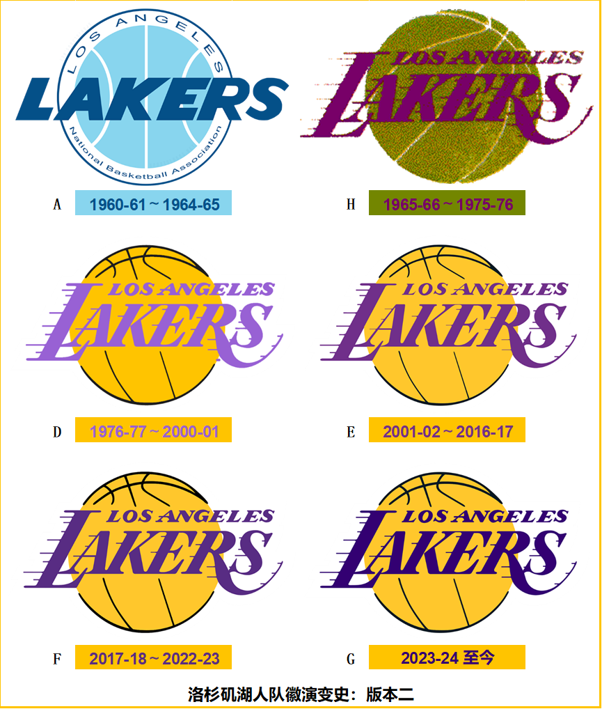 版本D、E、F、G除了图案中的文字“LOS ANGELES LAKERS”颜色深浅各异,我看不出其他不同。