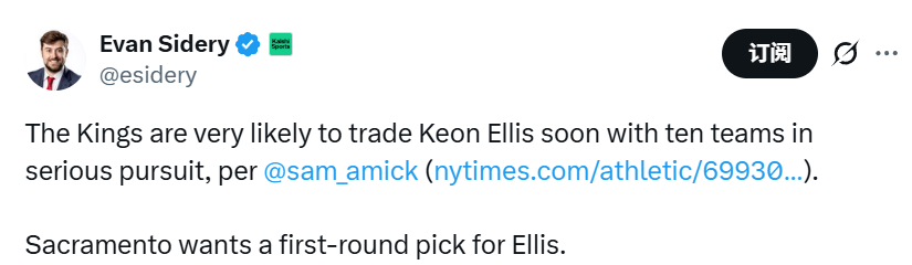 尽管埃利斯拥有备受青睐的“3D”属性,国王队主帅克里斯蒂却在过去两场比赛中弃用了他。消息人士称,国王队希望通过这笔交易得到一个首轮末段的选秀签
