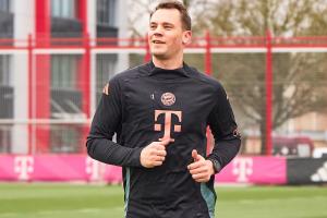 39岁的诺伊尔最近因肌肉问题不得不停止训练。他在对阵勒沃库森的欧冠1/4决赛首回合比赛中因庆祝进球右小腿肌肉纤维撕裂,不得不被替换下场。在三月底,已经恢复训练的诺伊尔伤势出现反复,不得不再次停止训练。